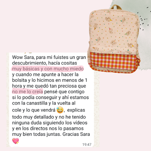 Ya he acompañado a más de 5000 personas en mis experiencias gratuitas, y a más de 100 alumnas que han aprendido a coser sin agobios, disfrutando del proceso y creando preciosos complementos y ropita para los más peque de la casa